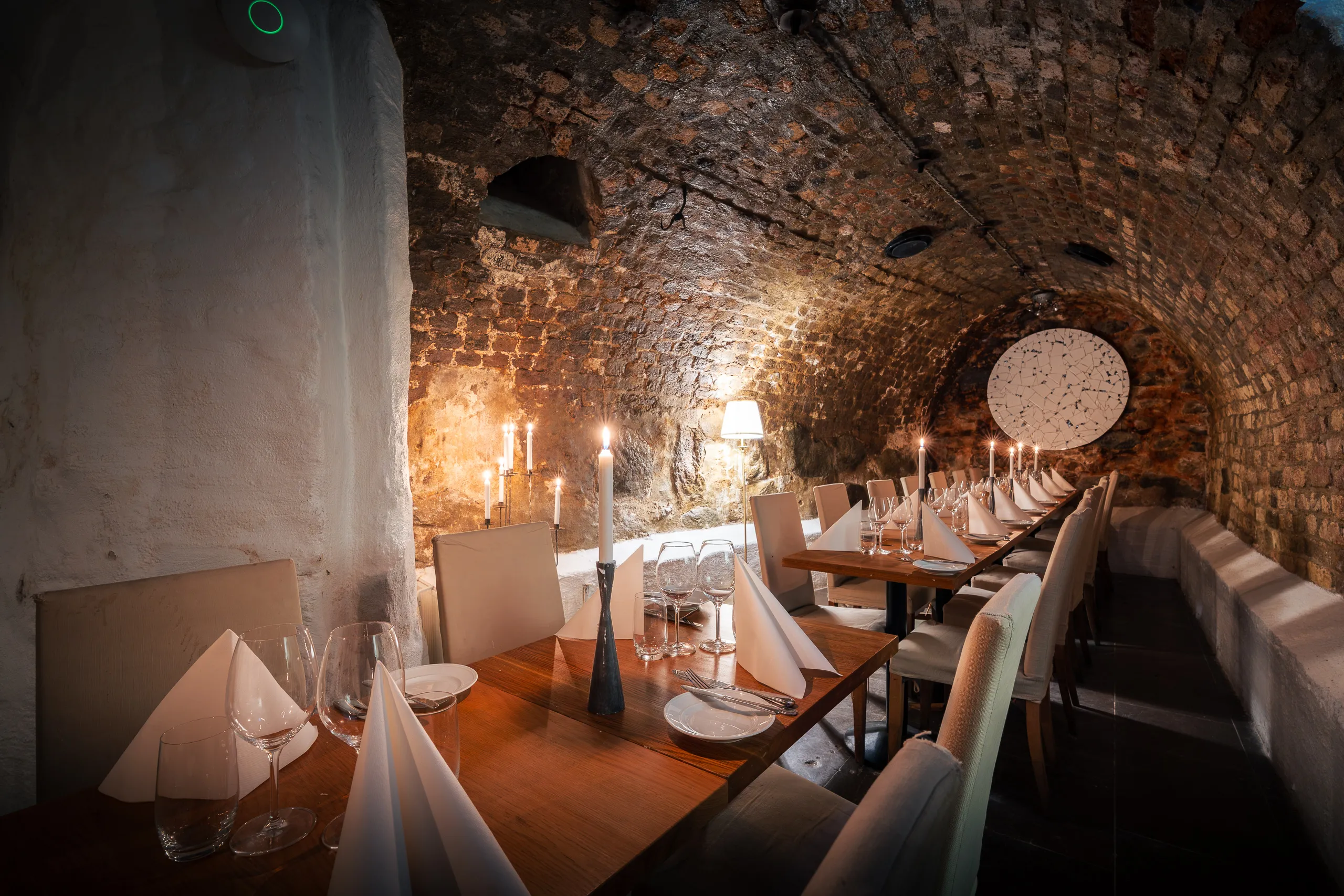 Upplev en middag i historiens vingslag. För större sällskap och firanden erbjuder vi våra unika rum Kungliga matsalen och Chambre séparée som ligger i vackra medeltida valv.